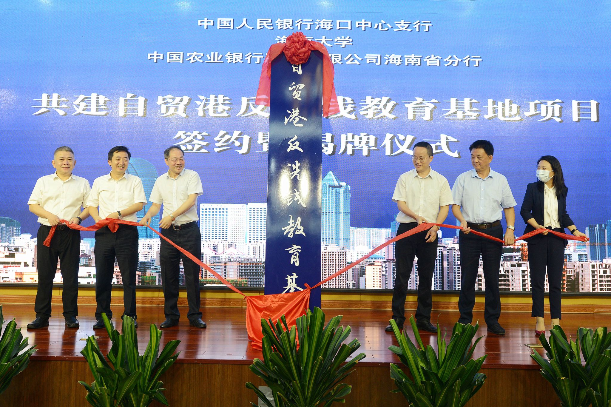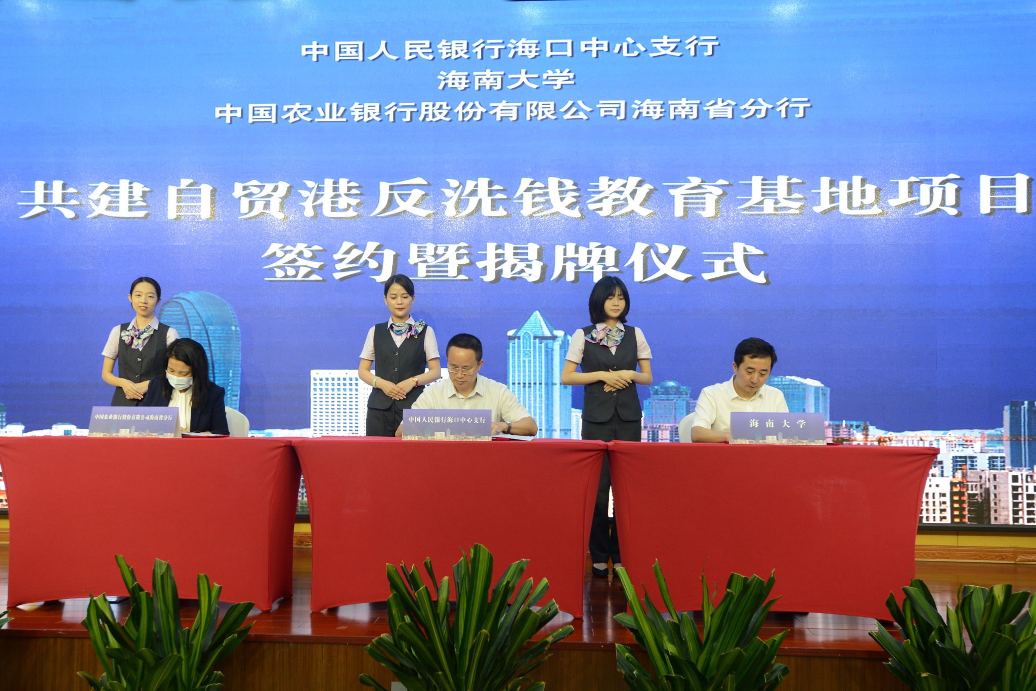 2022年4月28日,中国人民银行海南省分行、农行海南分行与公海gh555000aa线路检测签订合作备忘录,共建“自贸港反洗钱教育基地”。该教育基地旨在将反洗钱知识引进校园,拓展深化反洗钱宣传培训方式,增进员工对反洗钱专业知识的了解,提升员工识别防范洗钱风险、金融诈骗等能力。